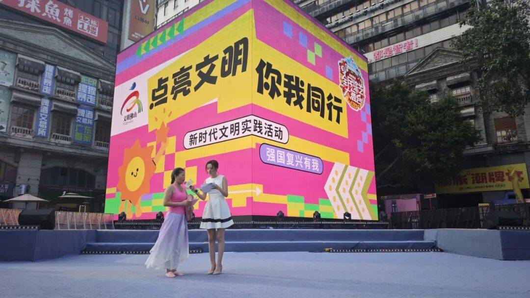 今年的全民综艺大舞台,在海选现场创新设置“文明舞台议题区”。该区域通过问答互动、留言墙两种形式,引导市民主动参与,共同营造文明观赛氛围,让文明实践与活动场景深度联动。
