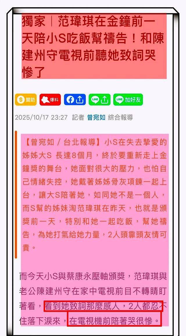 外界看,小S还是那个敢说敢做的主持人,但她内心的波动,只有身边的范玮琪能感受。