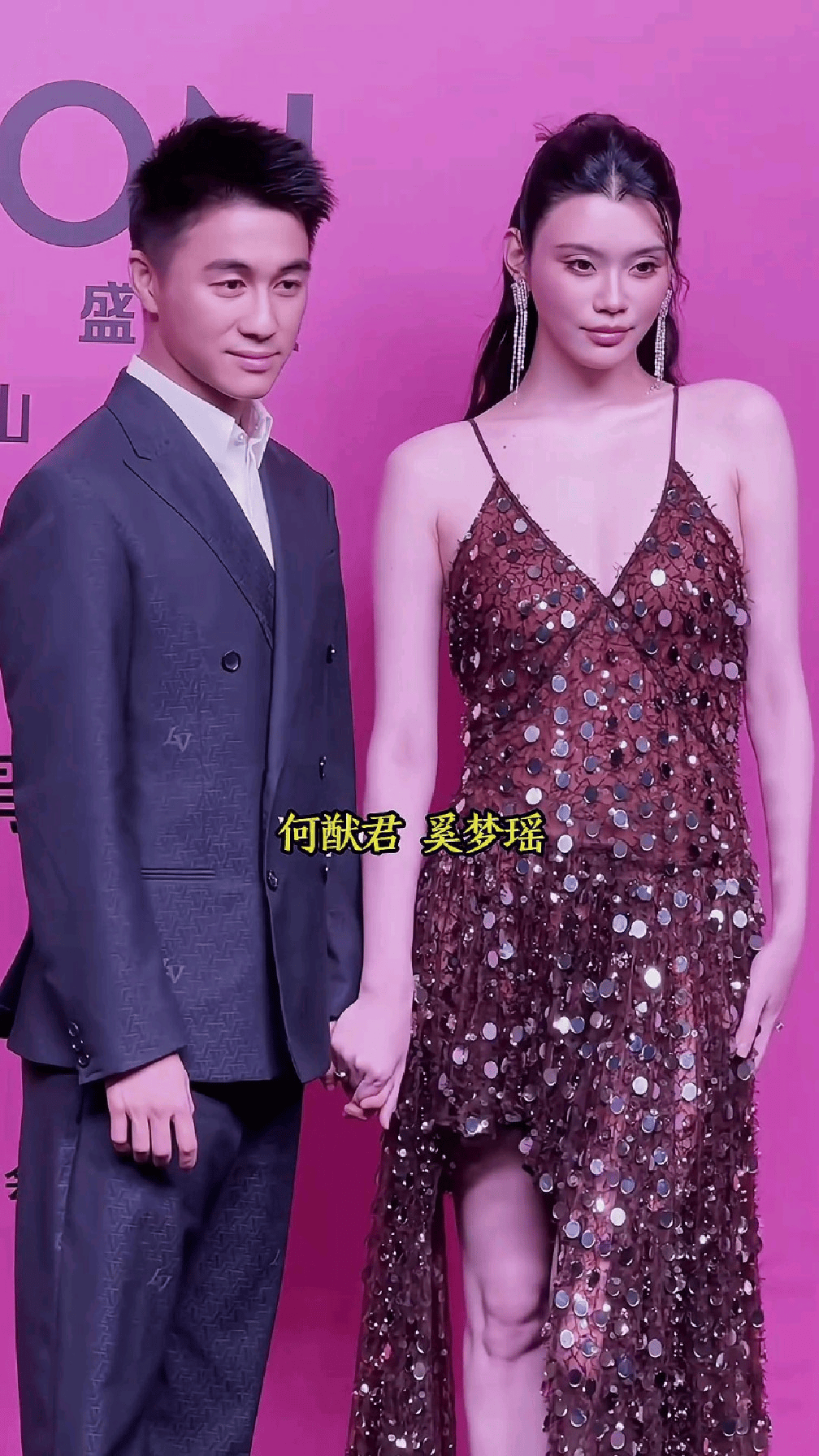 奚梦瑶与何猷君牵手走上红毯