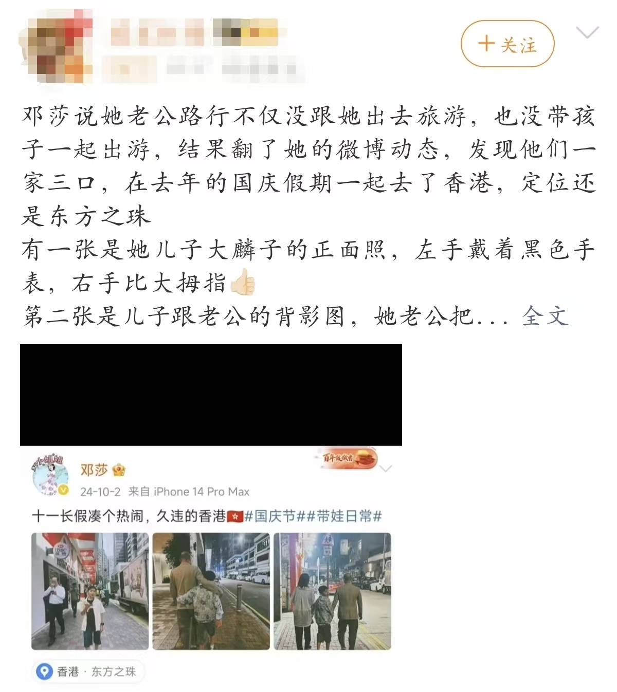 有人翻出她去年国庆晒的照片,一家三口去香港旅游,画面里路行一手搂着儿子,父子俩笑得亲密无间。