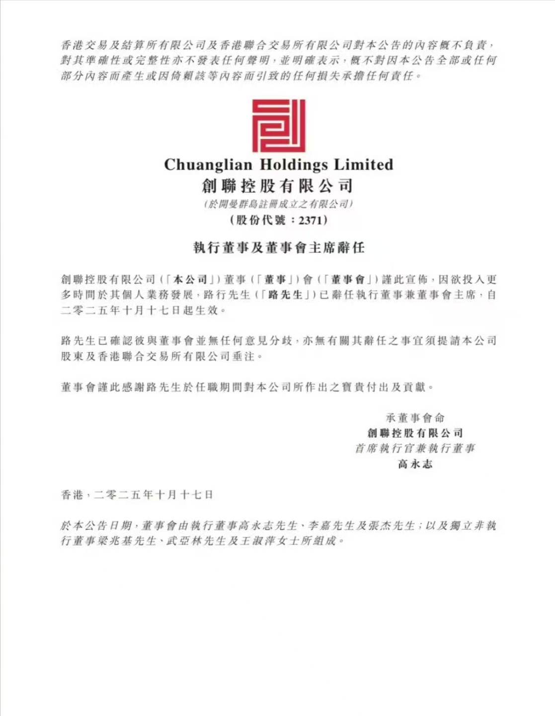 10月16日节目开播,10月17日就有消息传出:路行正式从创联控股离职。