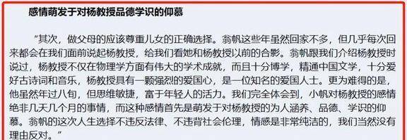 所以记者只能去找翁帆的老爸,想打听一下翁帆和杨振宁的事。