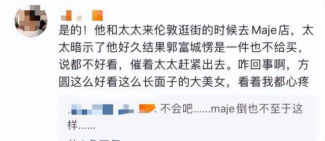去伦敦游玩时逛Maje店,方媛暗示郭富城想要礼物,郭富城却装傻充愣,一件不买,就连服务员都觉得郭富城不给方媛面子。