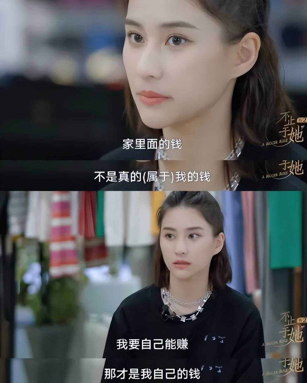 后来的一系列操作就不用说了,上综艺输出表达自己的观点,一句“家里的钱不属于我”,头脑清醒的大女主人设就起来了。再加上长相姣好,性格接地气,一时间圈粉无数,商业价值飙升。