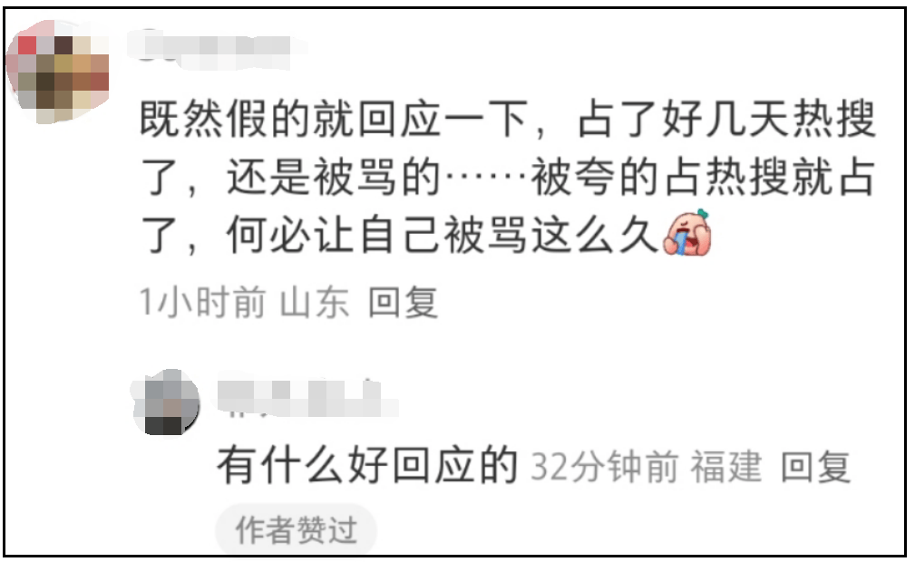 看到何超莲最新动态,有网友表示既然是假消息就该出面回应,免得总是占据热搜,还要被骂。但也有人认为,没必要对子虚乌有的事情回应。