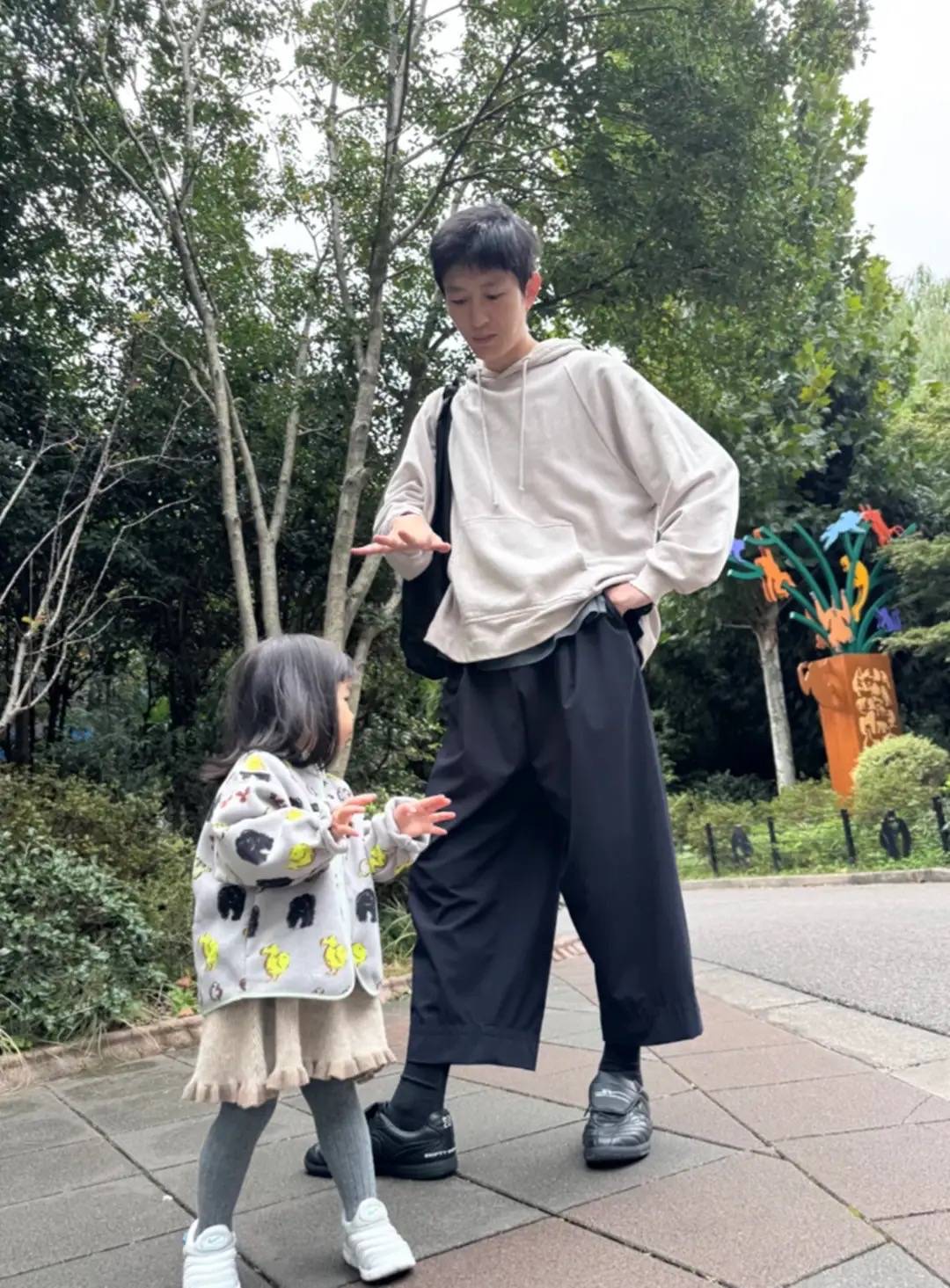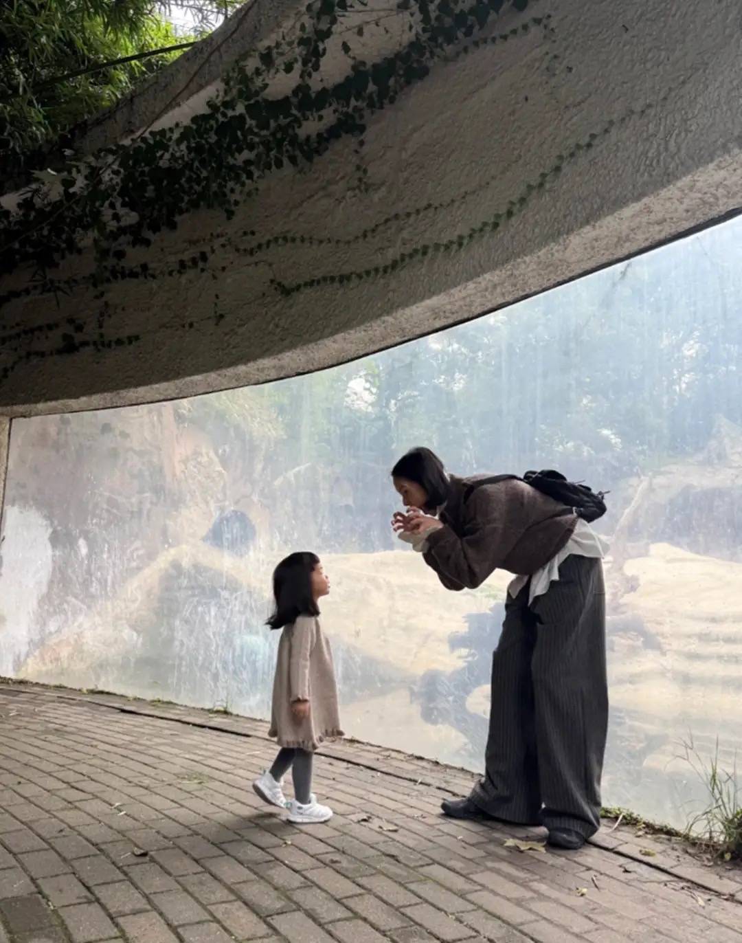 当妈后的雎晓雯,脸上的气质越来越柔和。她穿了一件宽松上衣、高腰阔腿裤,在和女儿玩游戏,镜头下雎晓雯的腿比2岁女儿都长。