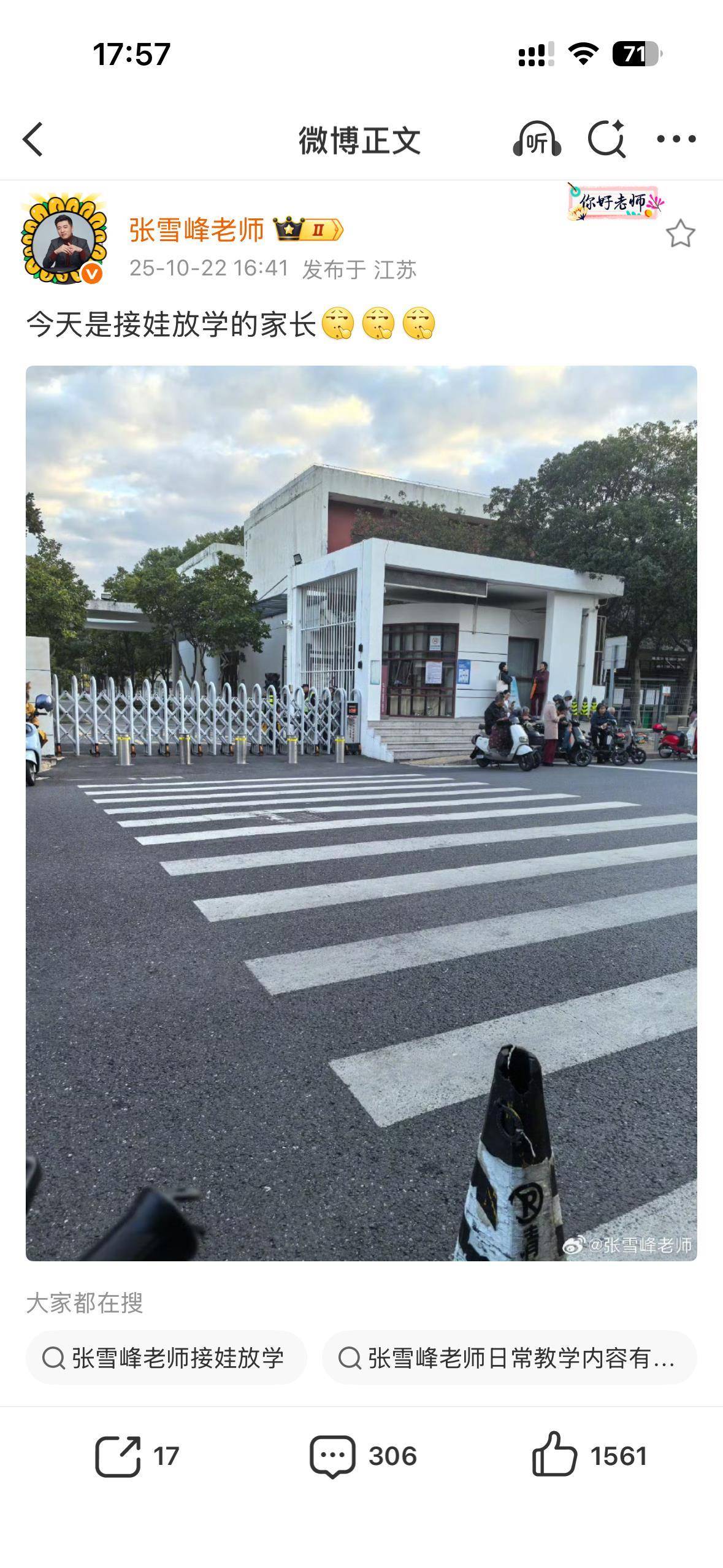 10月22日16时41分,知名高考志愿导师张雪峰的微博账号恢复更新,称“今天是接娃放学的家长”。这是他账号被禁止关注28天后的第一条微博,微博账号也可被用户正常关注。