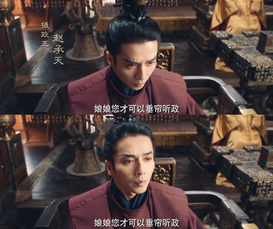 一个是扶持自己垂帘听政的摄政王赵承天(谢茗宇 饰演)。这个摄政王权倾朝野。之前,皇上的母后去世,跟姜蓉有些关系,也就是说,姜蓉是皇上的仇人。正因为有摄政王的扶持,太后姜蓉才可以垂帘听政。