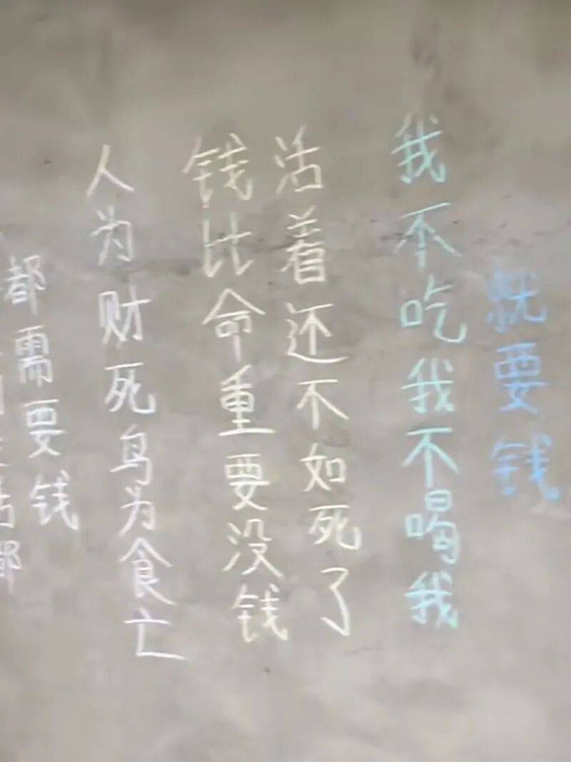 “中原黄哥”的妻子曾称,他入局喝播是为了还家里的债。在他直播房间的墙上,布满彩色粉笔字——“人为财死鸟为食亡”“生活不是为了钱,但想要的生活都需要钱”。