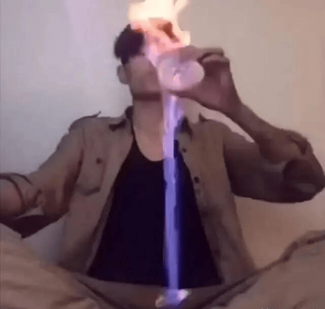 真正让“中原黄哥”出圈的,是“火烧鸡”事件。在2016年的一条视频中,他端起一杯燃起火苗的酒往嘴里送,结果酒意外洒在了裤裆上,火苗迅速上蹿。