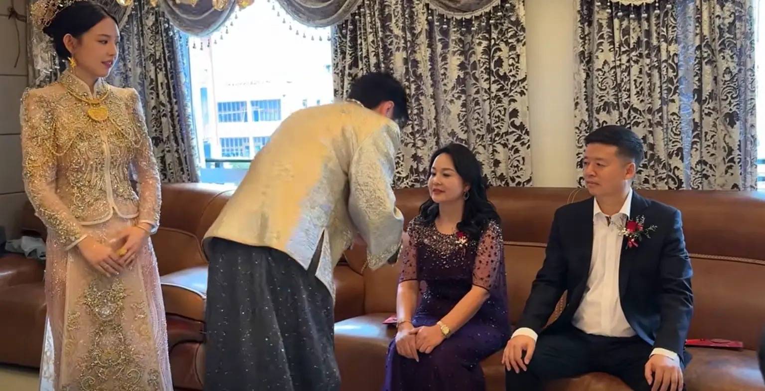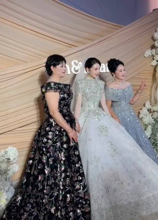三妹张芊意在婚礼环节,还牵着两位妈妈的手上台。这两位妈妈看着都很富态,尤其是穿黑色礼服的喜婆婆,给人一种很端庄的感觉。