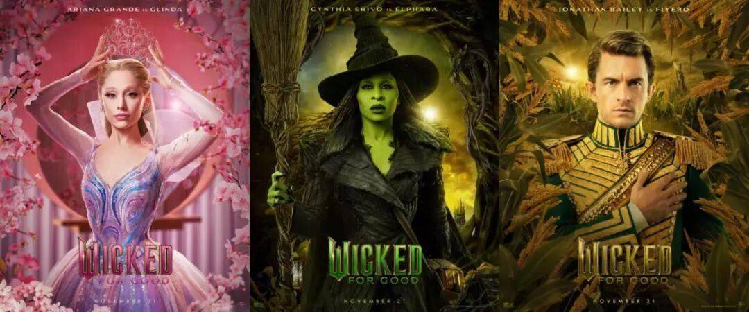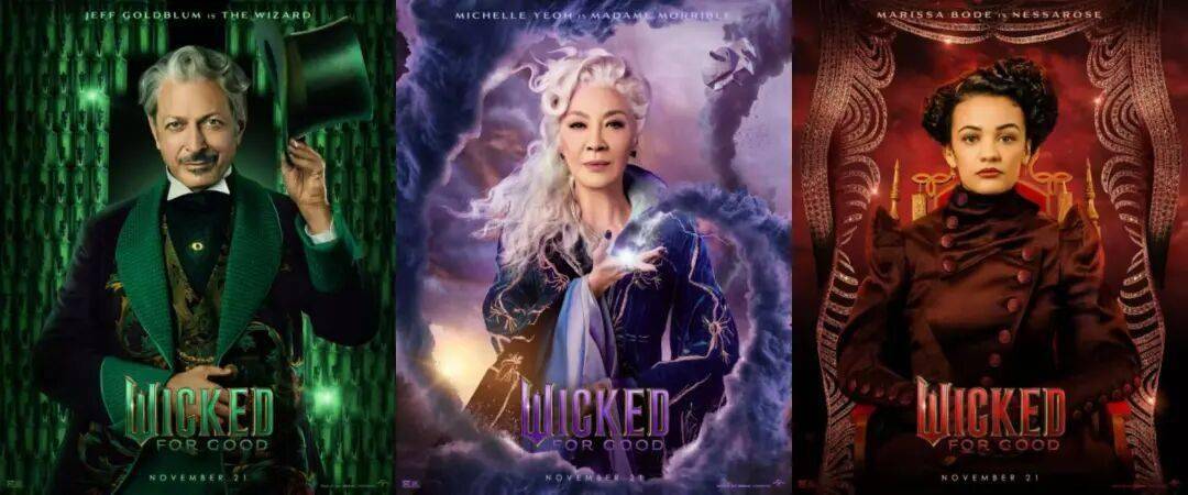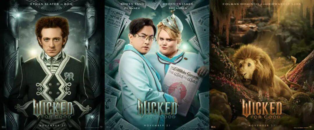 音乐剧电影《魔法坏女巫:永恒》发布角色海报,爱莉安娜·格兰德扮演的格琳达、辛西娅·埃里沃扮演的艾芙芭、乔纳森·贝利扮演的费耶罗王子、杨紫琼扮演的莫里布尔夫人、杰夫·高布伦扮演的奥兹国大巫师、“海绵宝宝”伊桑·斯莱特扮演的巴克、玛丽莎·博德扮演的娜瑟萝等以新造型集体回归,还有科尔曼·多明戈惊喜加盟扮演胆小狮。影片讲述了艾芙芭(辛西娅·埃里沃 饰)完全控制了自己的超能力,并被大巫师(杰夫·高布伦 饰)和莫里布尔夫人(杨紫琼 饰)宣布为国家敌人之后的故事,将于11月21日北美上映。
