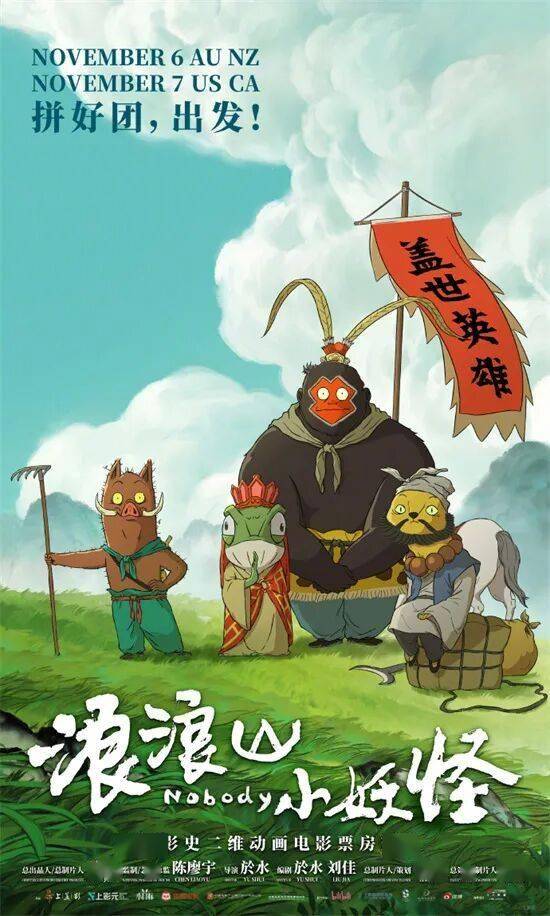 电影《浪浪山小妖怪》宣布将于11月6日于澳大利亚、新西兰、马来西亚上映,11月7日北美上映。影片由於水导演,於水、刘佳编剧,目前累计票房已超17亿元,位居中国影史二维动画电影票房冠军,中国影史动画电影票房榜前5名。
