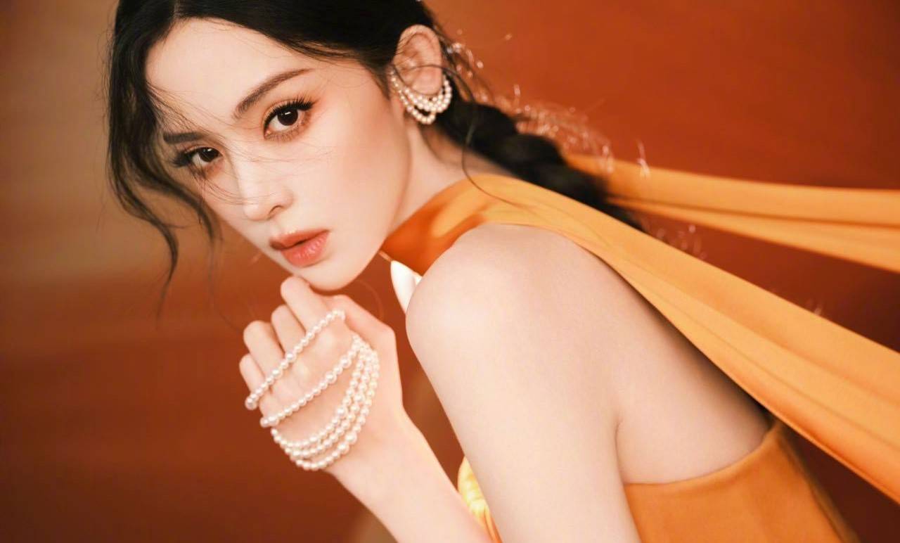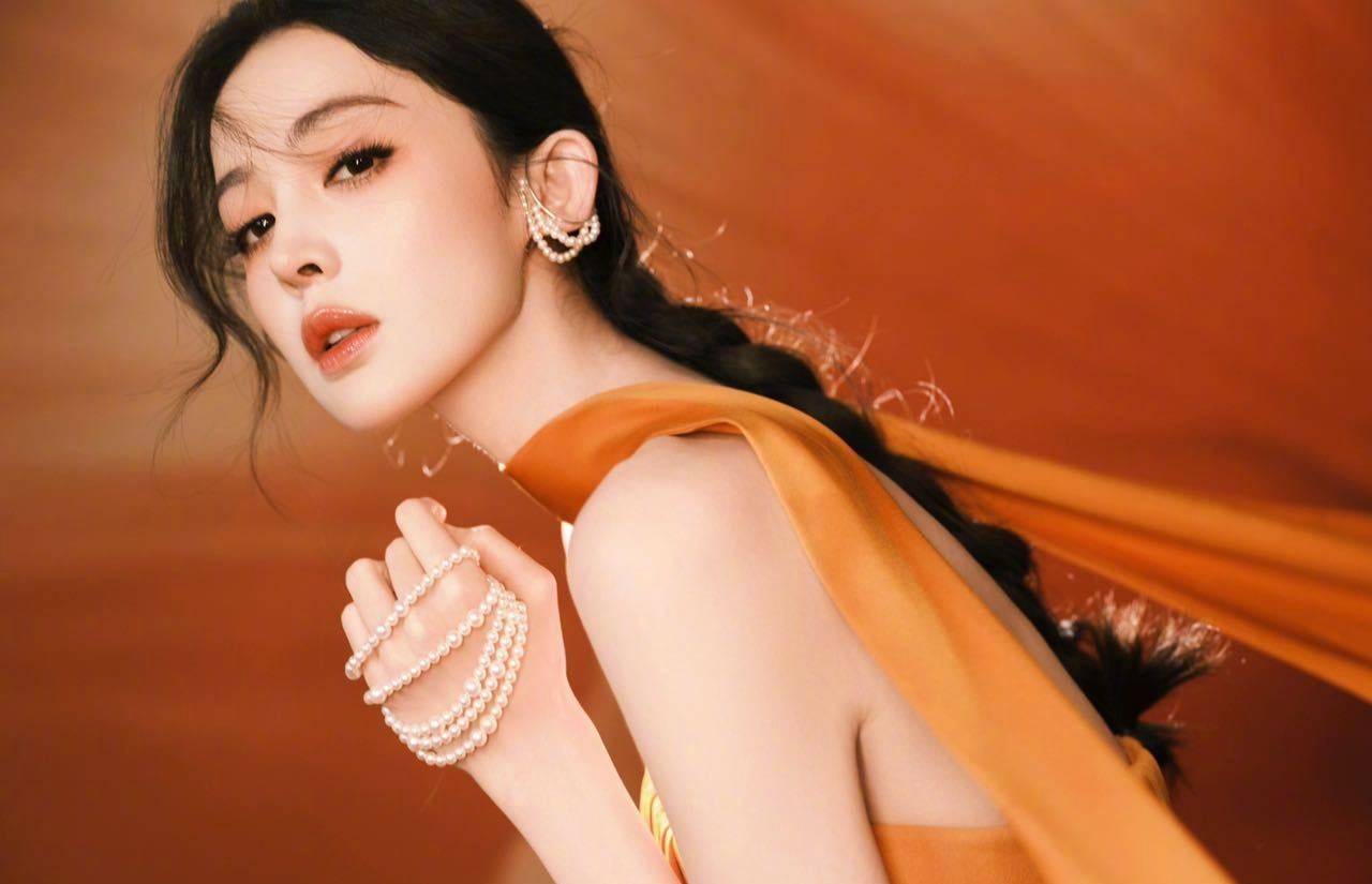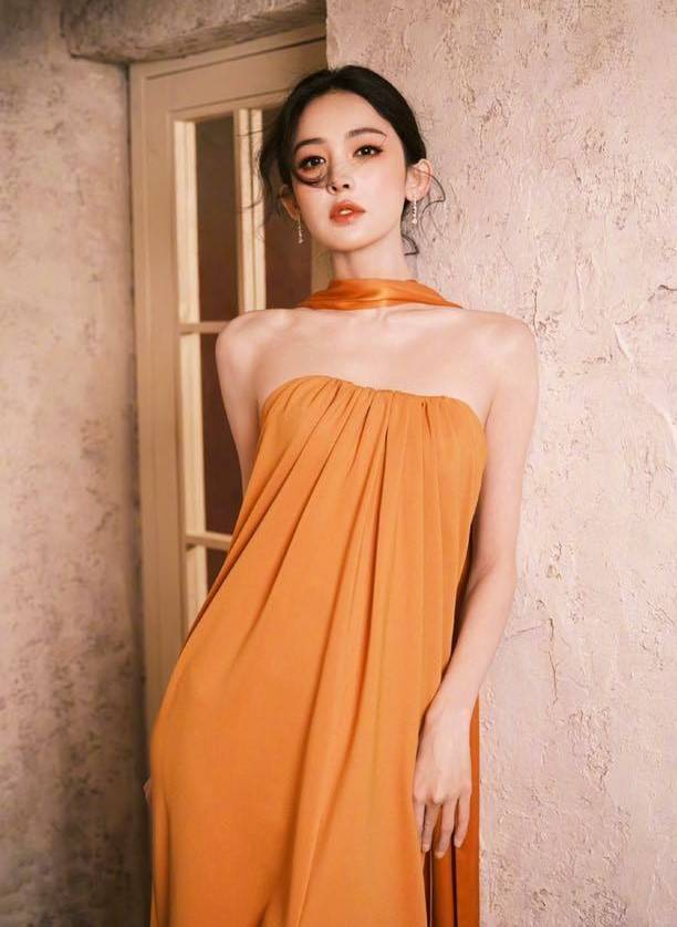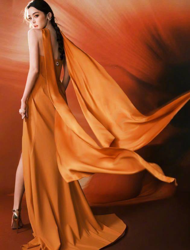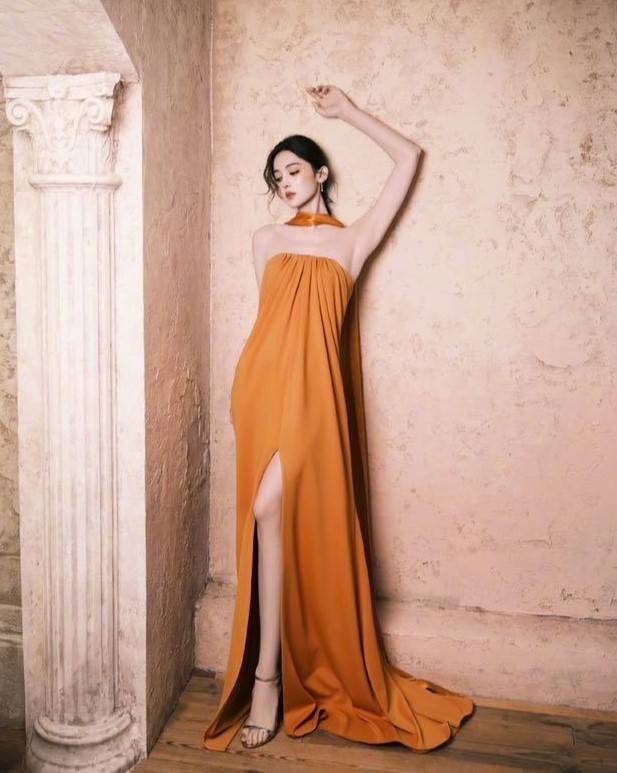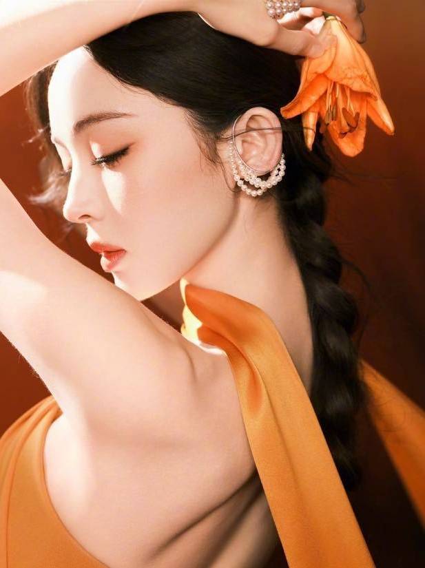 搜狐娱乐讯 10月24日,古力娜扎的一组盛典造型释出。图中,她穿着暖橙色长裙,轻捻花枝,气质优雅。