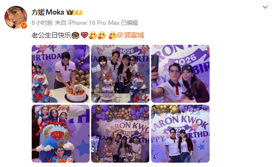 搜狐娱乐讯 26日,方媛在社交平台分享郭富城生日派对照片,并配文“老公生日快乐”。随后郭富城回复“谢谢老婆,谢谢大家的祝福”。据悉,这是方媛生完三胎后首度露面,照片中,方媛状态极佳,和郭富城甜蜜比心,幸福满溢。