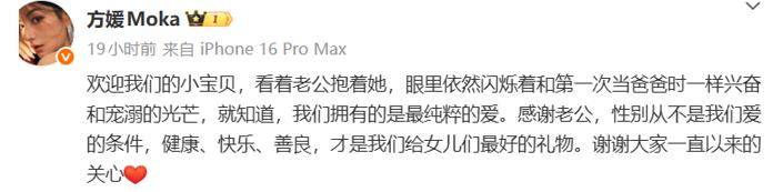 方媛也转发了郭富城的说法,强调性别不是爱的条件,言外之意就是他们乐意生女儿,不劳网友瞎操心了。