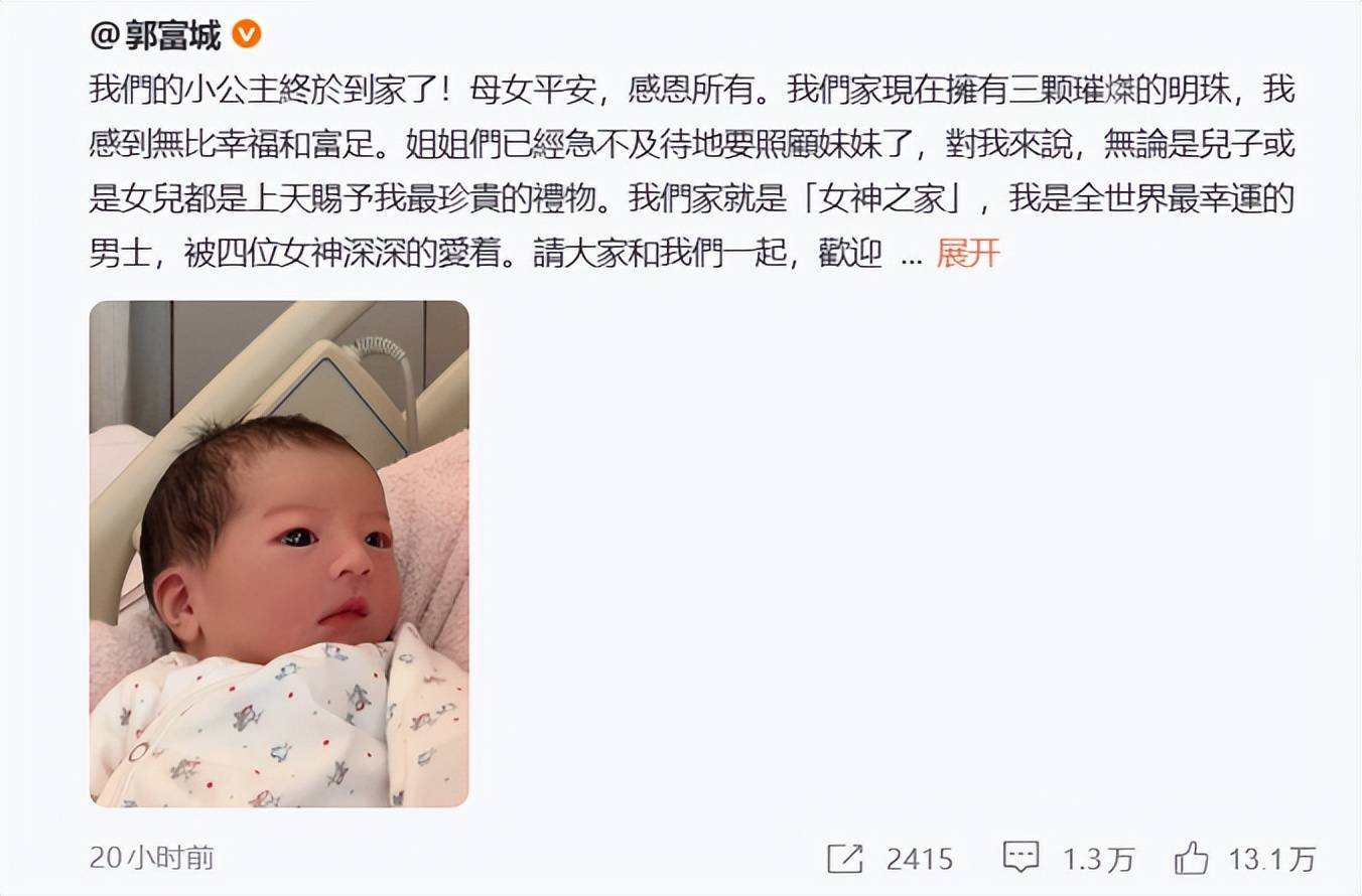 女儿出生后,郭富城第一时间接走女儿,让女儿和母亲分离的做法,也让不少网友感到不满。