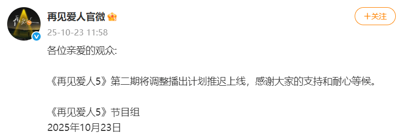 留几手发文表示不会更新《再见爱人5》的点评视频,坦言再回忆节目会有窒息感。