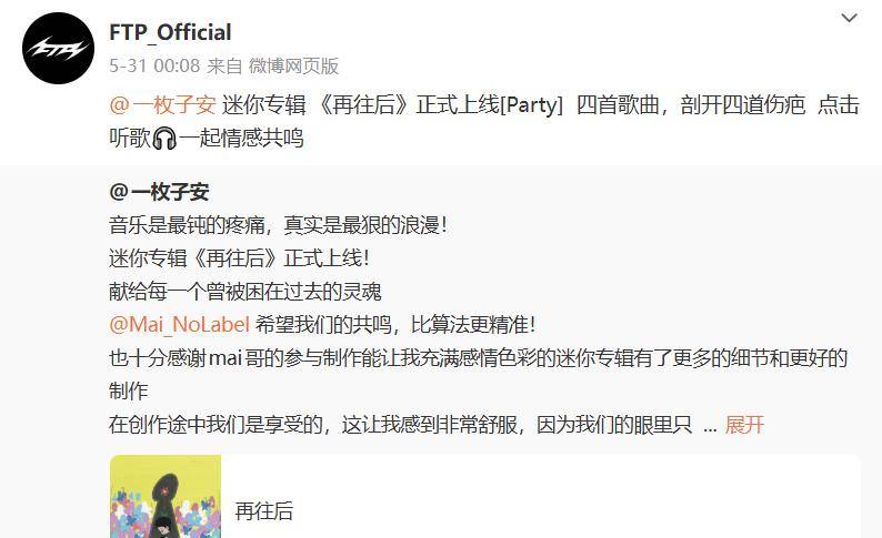 不过,在那之后,FTP倒直接没动静了...上一次发博,正是五月份,宣传这位新人。