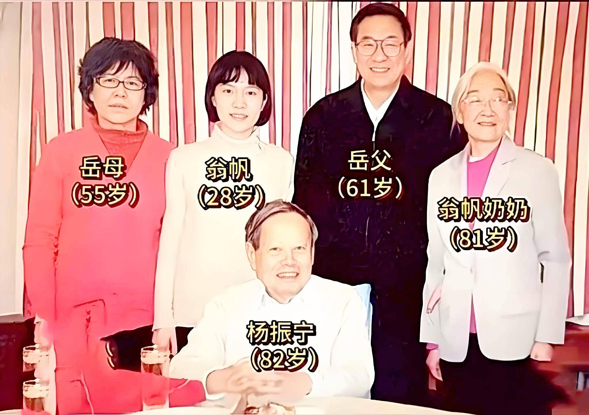 翁帆比杨振宁小54岁,而杨振宁比岳父大19岁,比岳母大25岁。
