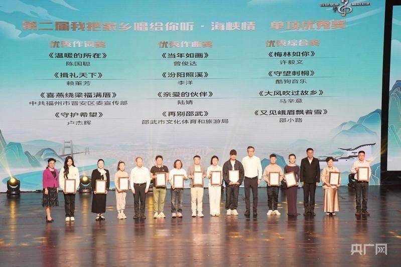 福建是台胞主要祖籍地、“海上丝绸之路”重要起点。第二届“我把家乡唱给你听·海峡情”征集评选报名歌曲近6000首,歌曲数量是第一届的10倍,最终评出综合最佳奖《晋安》、最佳作曲奖《福汀州》、最佳作词奖《巷往》、网络人气奖等奖项。“我把家乡唱给你听·海丝情”大赛吸引3300多名音乐人投稿,共征集作品7528首,最终评出综合最佳奖《咏妈祖》、最佳作曲奖《月光下的中国》、最佳作词奖《念》、最佳编曲奖《梦回唐王城》及网络人气奖等奖项。