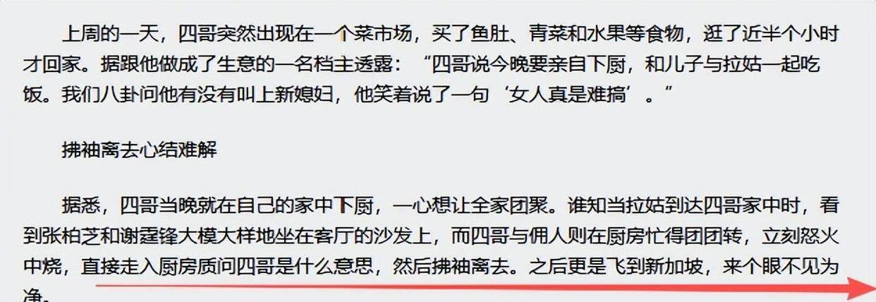 谢贤摆“和头酒”认儿媳,大家都知道这是传统的仪式,但狄波拉一看到就气得拂袖而去,场面真是让人唏嘘。央视网则报道拉姑痛骂张柏芝,直言她太狠心,不仅如此,还否认怒掴儿媳的事。不光这样,融合网还爆料,说刘嘉玲为了维护自己形象,竟然疯狂比拼张柏芝的身价,场面也是热闹非凡。这些事情啊,一波接一波,真是娱乐圈的大戏不断,让人看得过瘾!
