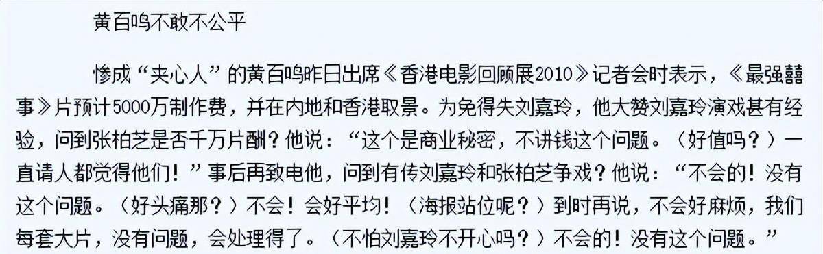 而今,刘嘉玲把狄波拉对张柏芝的赞美,直接摆到了台面上,毫不遮掩。
