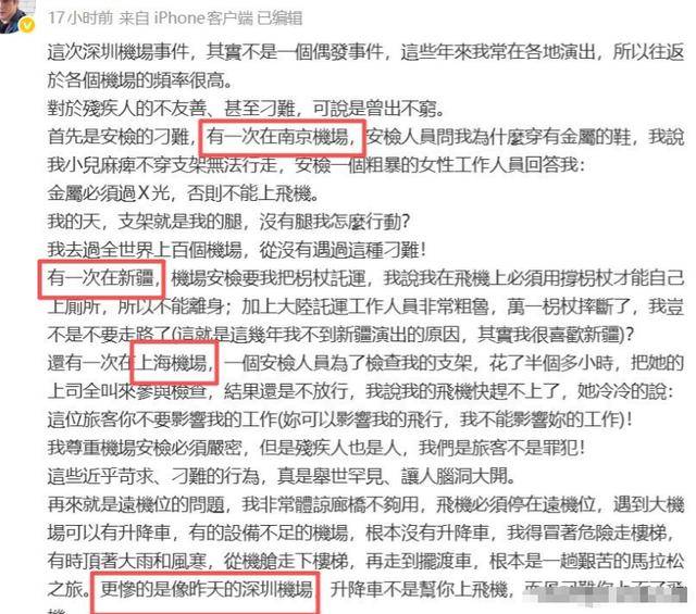 最后,他还特意加了句“这几个机场,包括深圳机场都已经向我道歉了”,那语气听着颇有些炫耀的意思。
