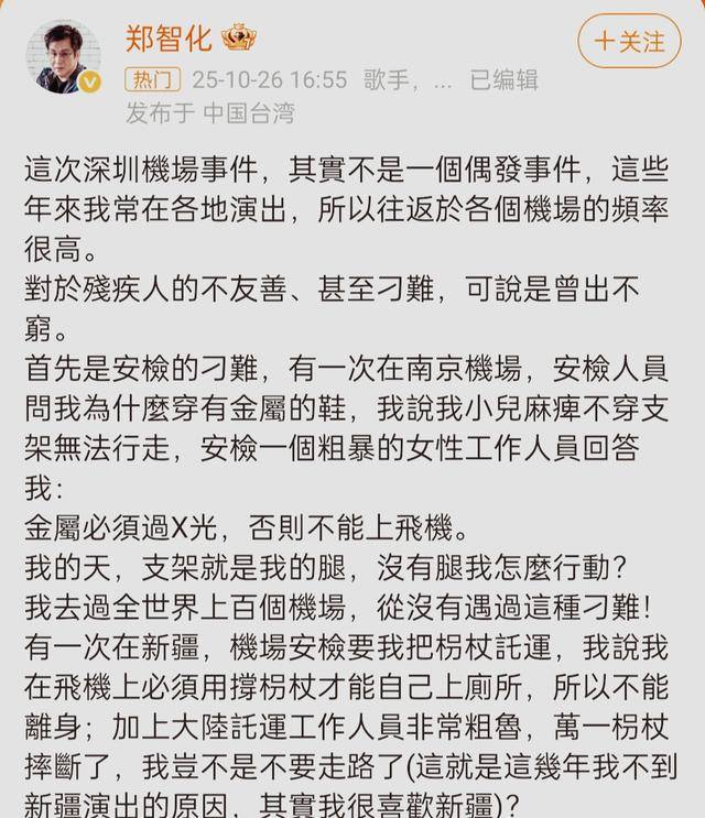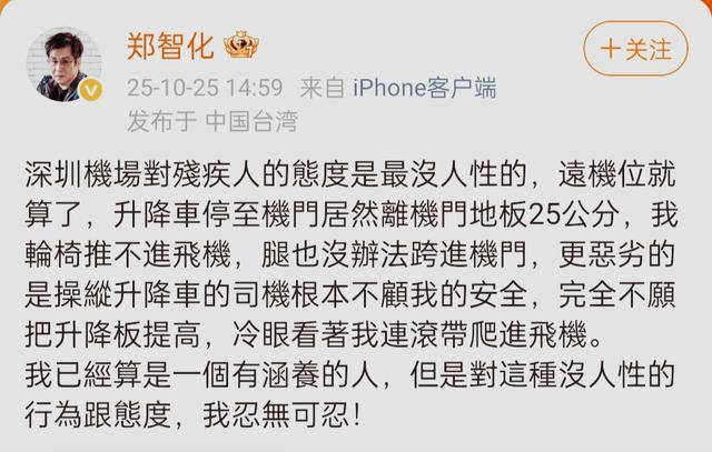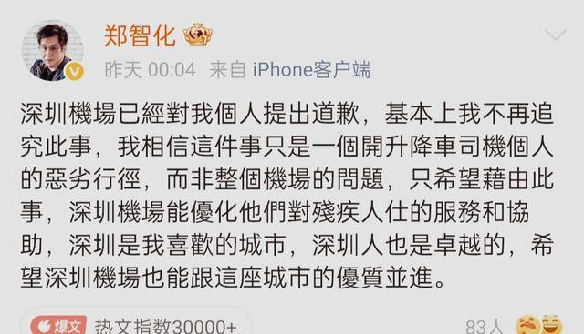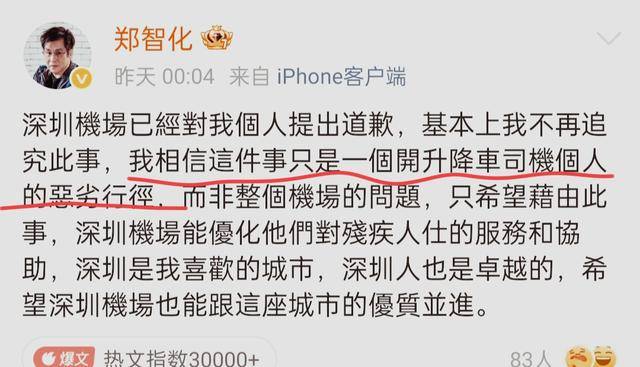 郑智化和深圳机场的事闹得沸沸扬扬。