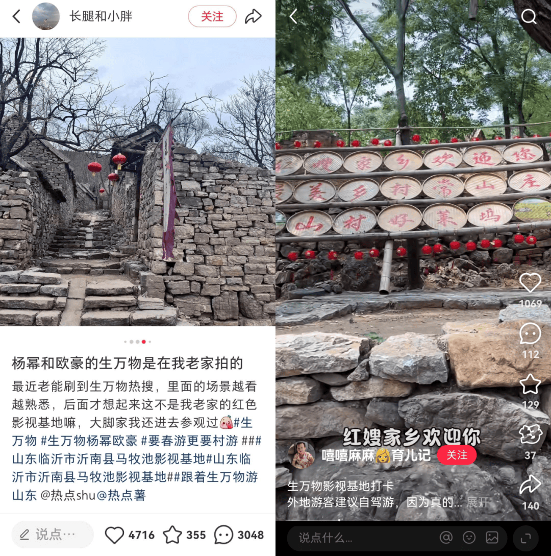 这种辐射甚至还能扩展至线下文旅。《生万物》播出中期取景地文旅联动剧集拔高声量,长尾期线上发酵旅游攻略,牵引观众实地打卡、发布vlog,形成了完善的“线上剧集-现实打卡”链路。《许我耀眼》同样掀起用户盘点北京取景地热潮,牵引线下Citywalk笔记发布。