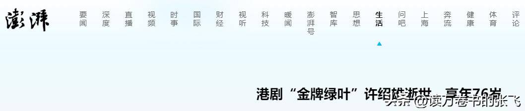 澎湃新闻——港剧“金牌绿叶”许绍雄逝世,享年76岁
