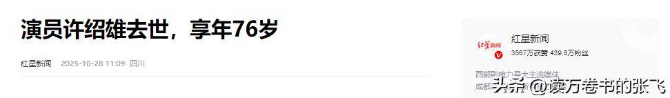 许绍雄在10月28日凌晨因为癌症导致身体多个器官功能衰竭,安静地离开了人世,享年76岁。