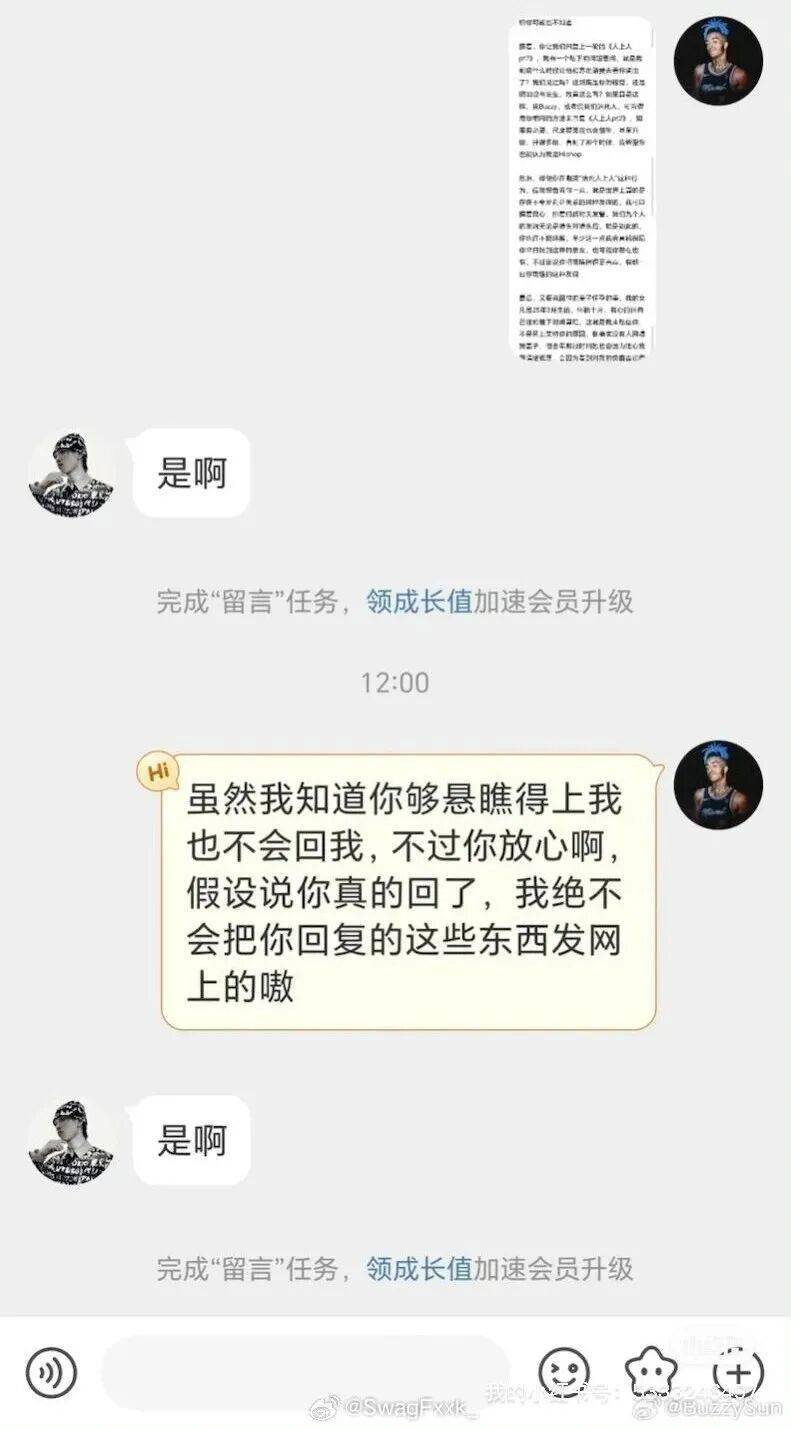 另外Buzzy还在公布私信后,在评论区回应: