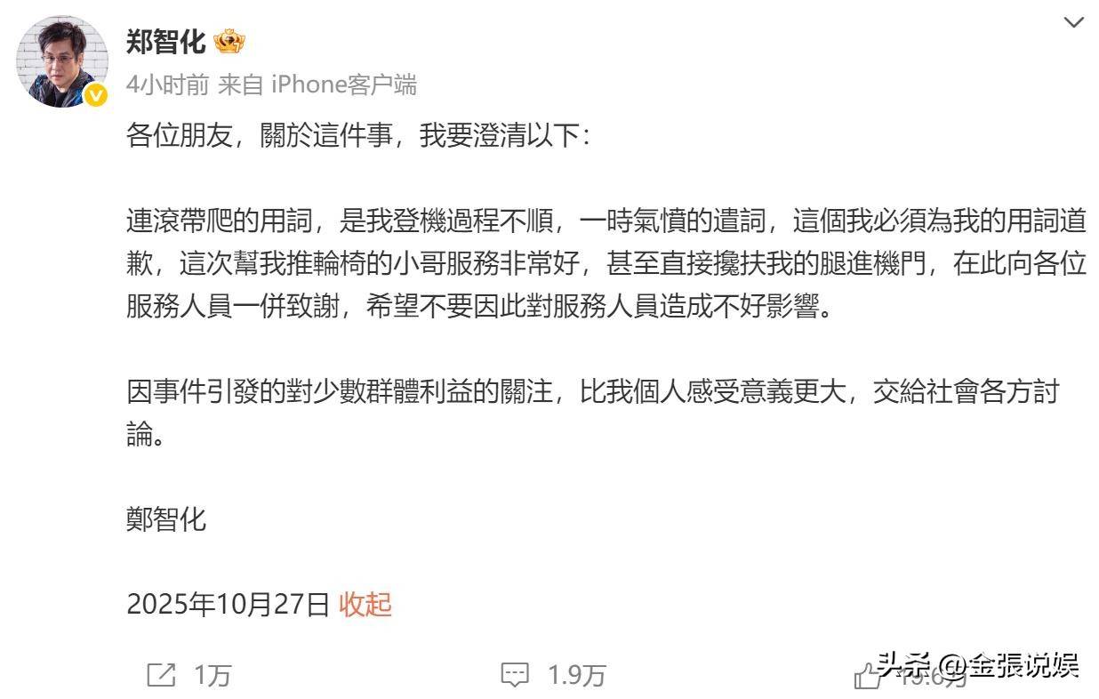 10月27日,郑智化终于发布了致歉声明。