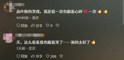 高叶这场戏,告诉观众什么叫“共情”,不是她演给你看她有多伤心,而是让你透过屏幕,真切地感受到了那种心被撕碎的痛苦。