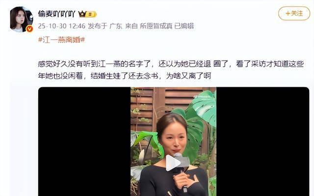 不同于娱乐圈里恋爱、结婚、离婚都要大张旗鼓官宣的明星,江一燕选择了最沉默的方式经营婚姻,就连结束这段关系,也只是在节目中轻描淡写地带过,没有长文告别,没有细节披露,只留下一个“已结束”的结果。