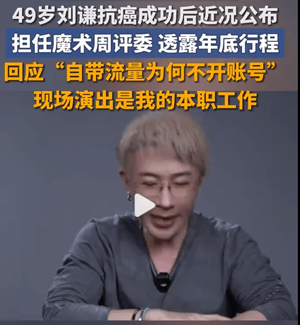 搜狐娱乐讯 近日,49岁刘谦抗癌成功后近况公布,他担任了上海国际魔术周评委,在接受采访时被问及怎么不在线上获得流量。他把魔术比作餐厅(做菜),称在网上教人做菜和这么做菜给别人吃,有巨大的不同,个人觉得自己是做菜给别人吃的那种人,所以必须开个餐厅,否则你没有办法做到你应该做的。