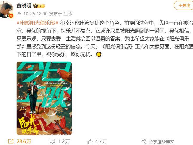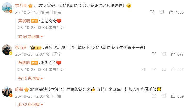 黄晓明昨天发文官宣自己的新片《阳光俱乐部》上映,用上了自己在娱乐圈的人脉,数十位明星赶来评论。