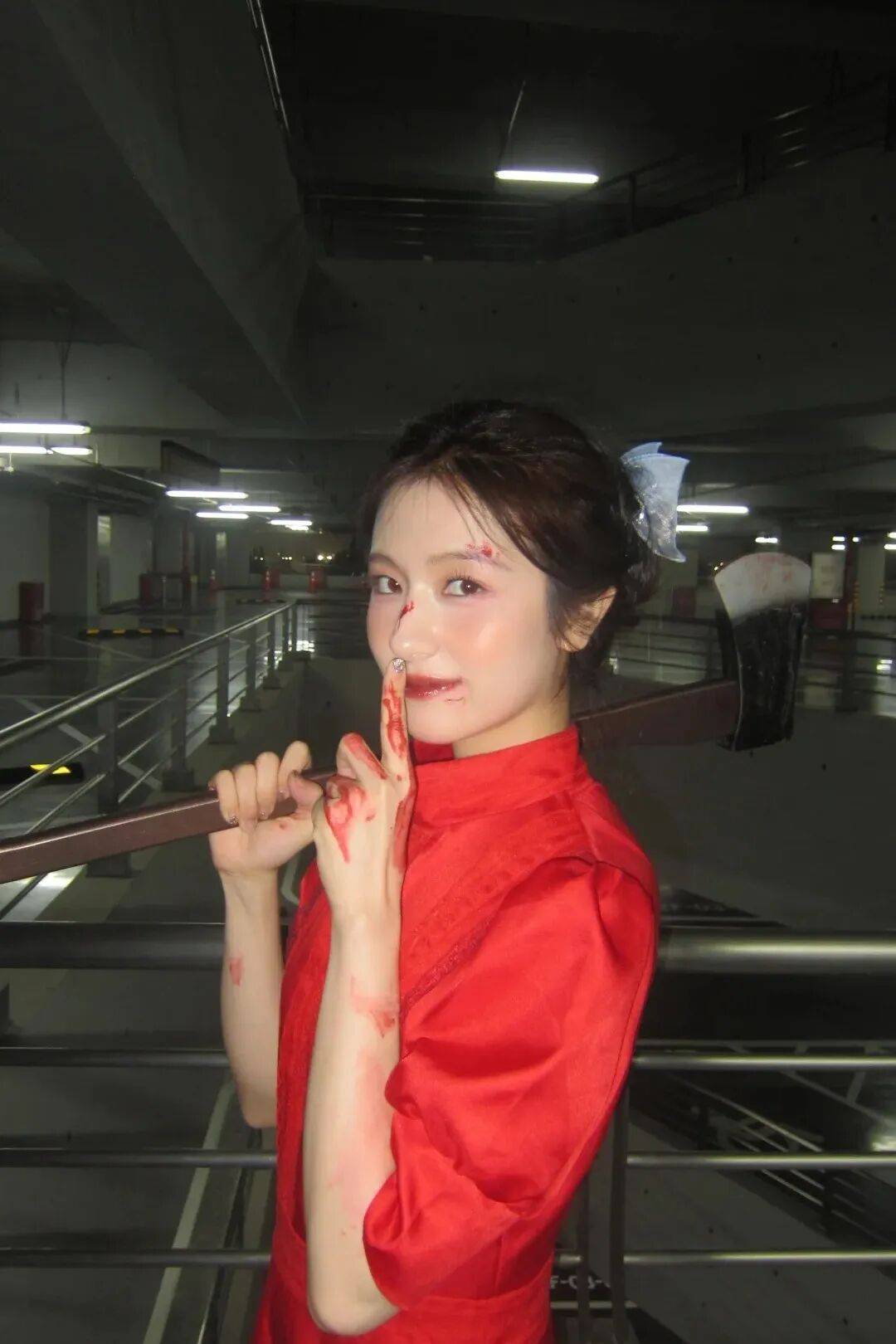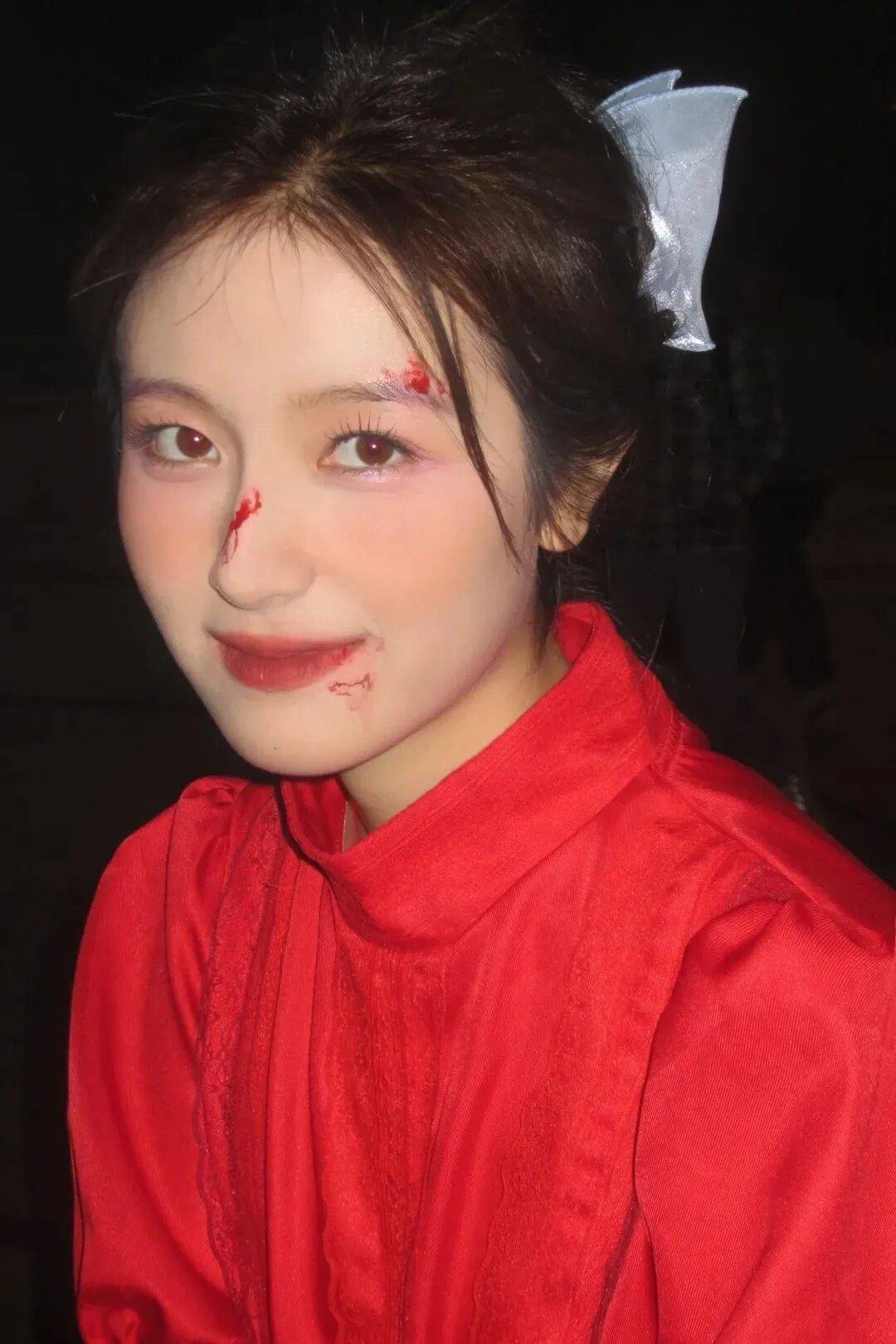 如果想要一个低调但抓人眼球的造型,可以参考李兰迪COS的珀尔。一个看上去楚楚动人的“无辜反派”,是不是更带感?李兰迪以浅色眉、几乎透明的眼妆、微微泛红的嘴唇加持,疯狂中多了一丝病娇般的乖巧。