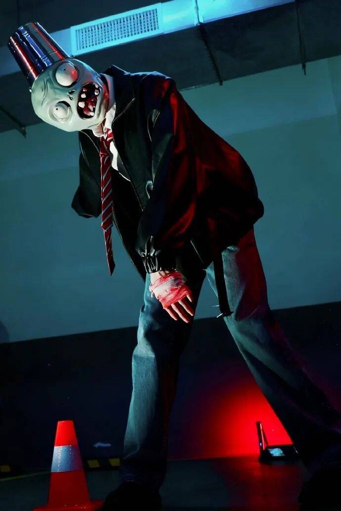 打扮成“反派怪物”的还有林一,他更新了一组COS铁桶僵尸的照片,还原了《植物大战僵尸》里的名场面,眼睛歪斜就像准备吃掉“美味的大脑”。
