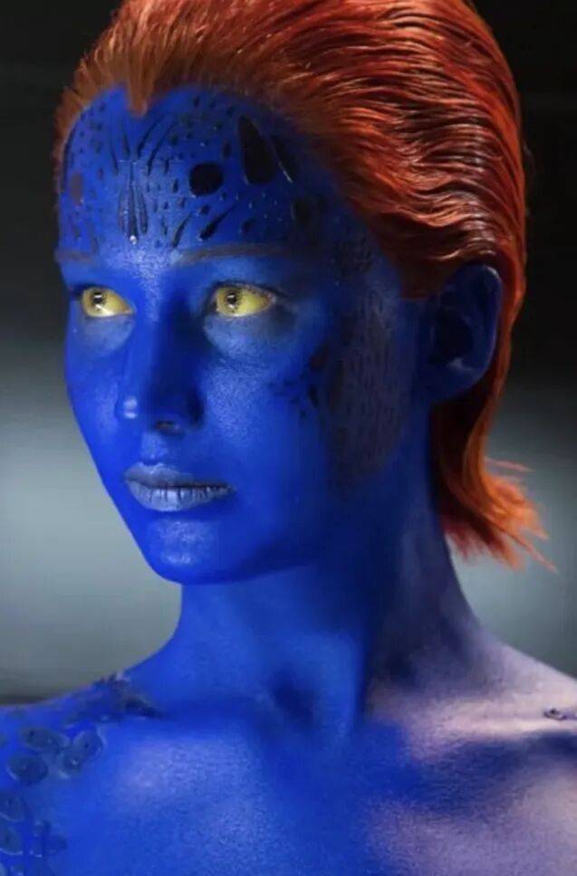 蓝色眼妆:主色调采用深蓝至冰蓝的渐变,眼窝大面积铺陈深蓝色眼影,拉长眼尾至太阳穴,塑造狭长眼型;