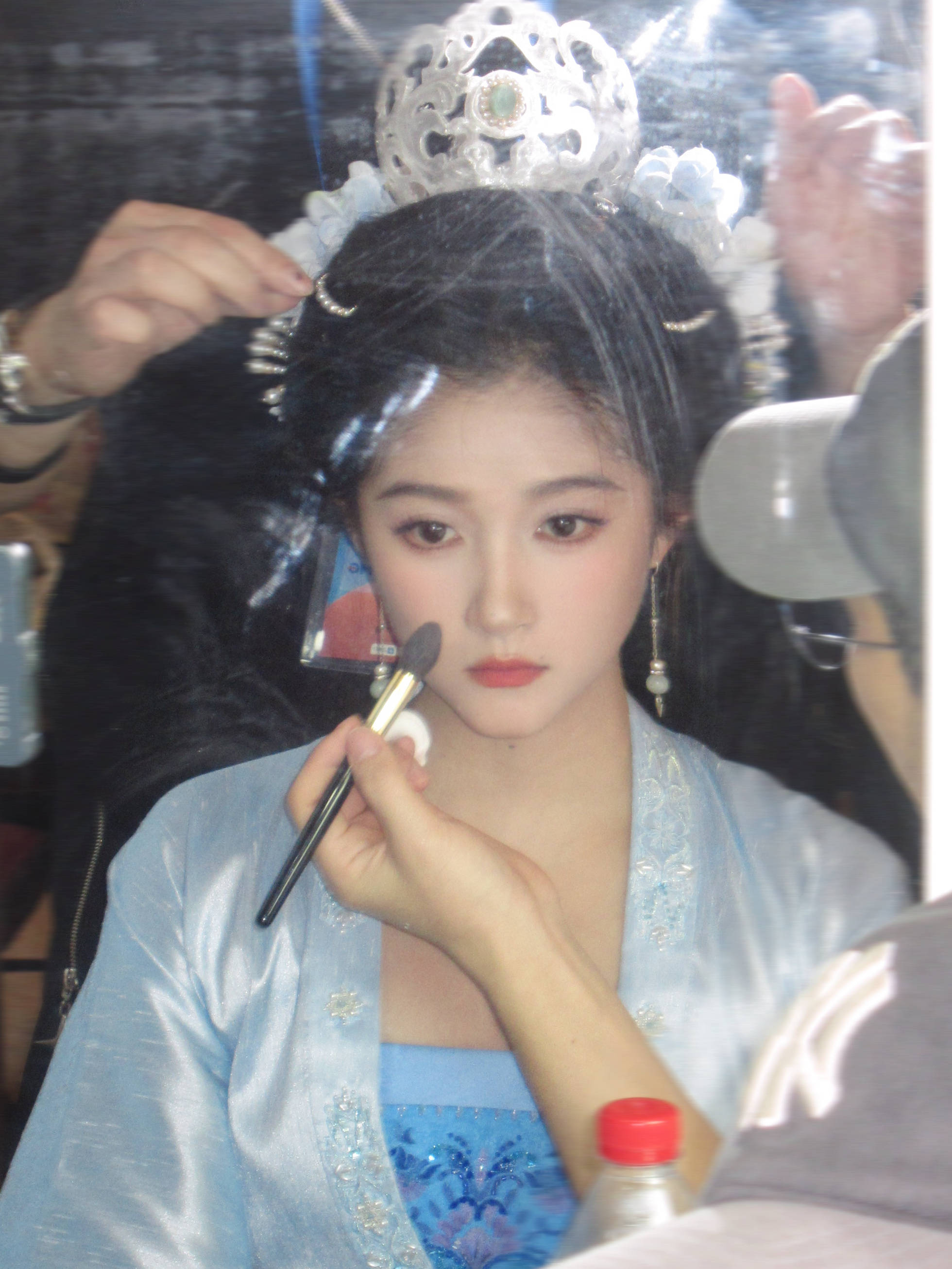 关晓彤对镜补妆,五官大气。