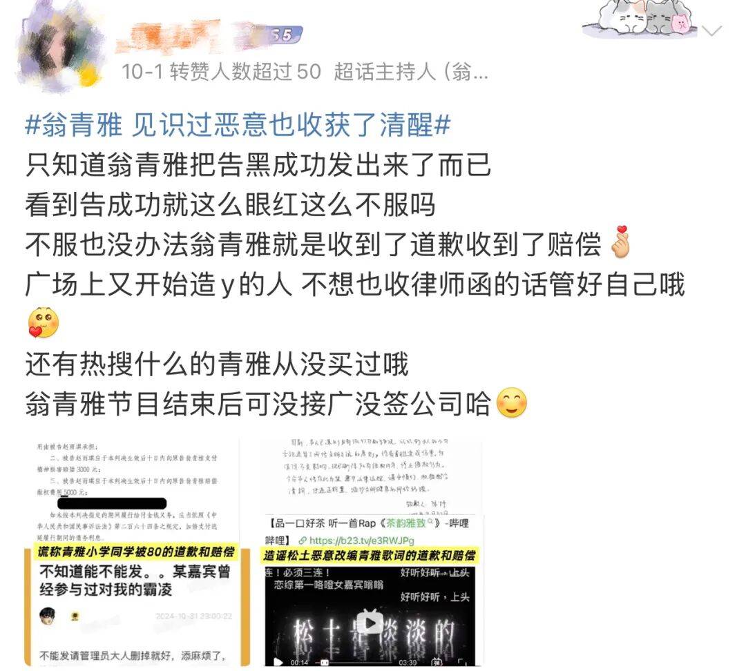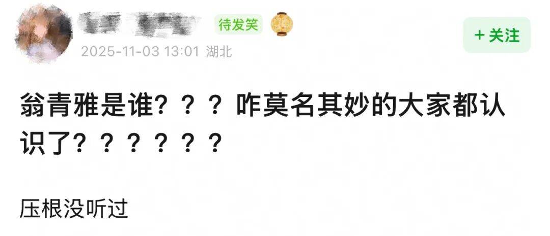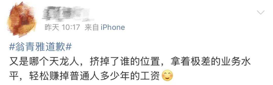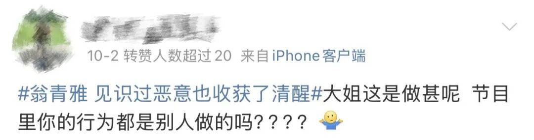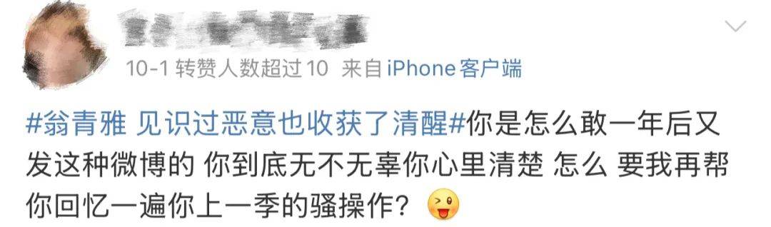 至于翁青雅,em...还能说啥呢,一次次出来刷存在感却一次次翻车,精准踩雷从不失手。