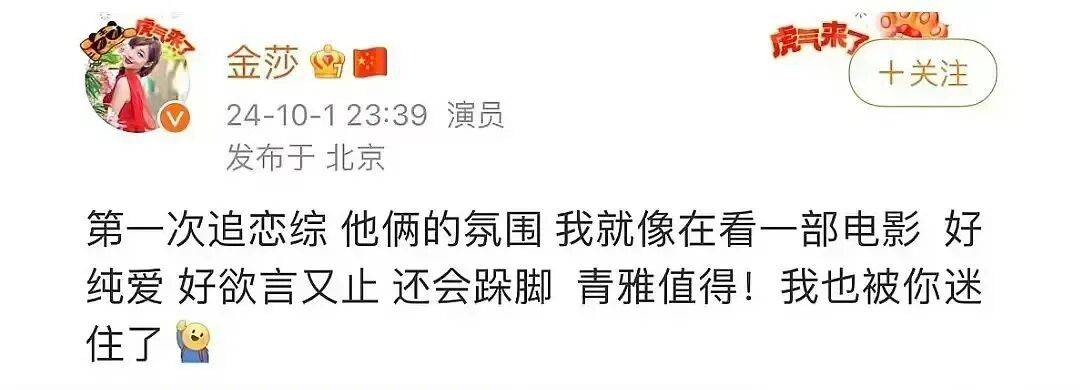 什么初见时盯着她说出“心动短信对象有改变”啊,什么日常互动中明确表达关注啊,什么借“once date”机会策划夏夜江边烟火约会啊,没办法,恋综观众就喜欢这种明目张胆的偏爱,两人的cp很快也火得一塌糊涂。