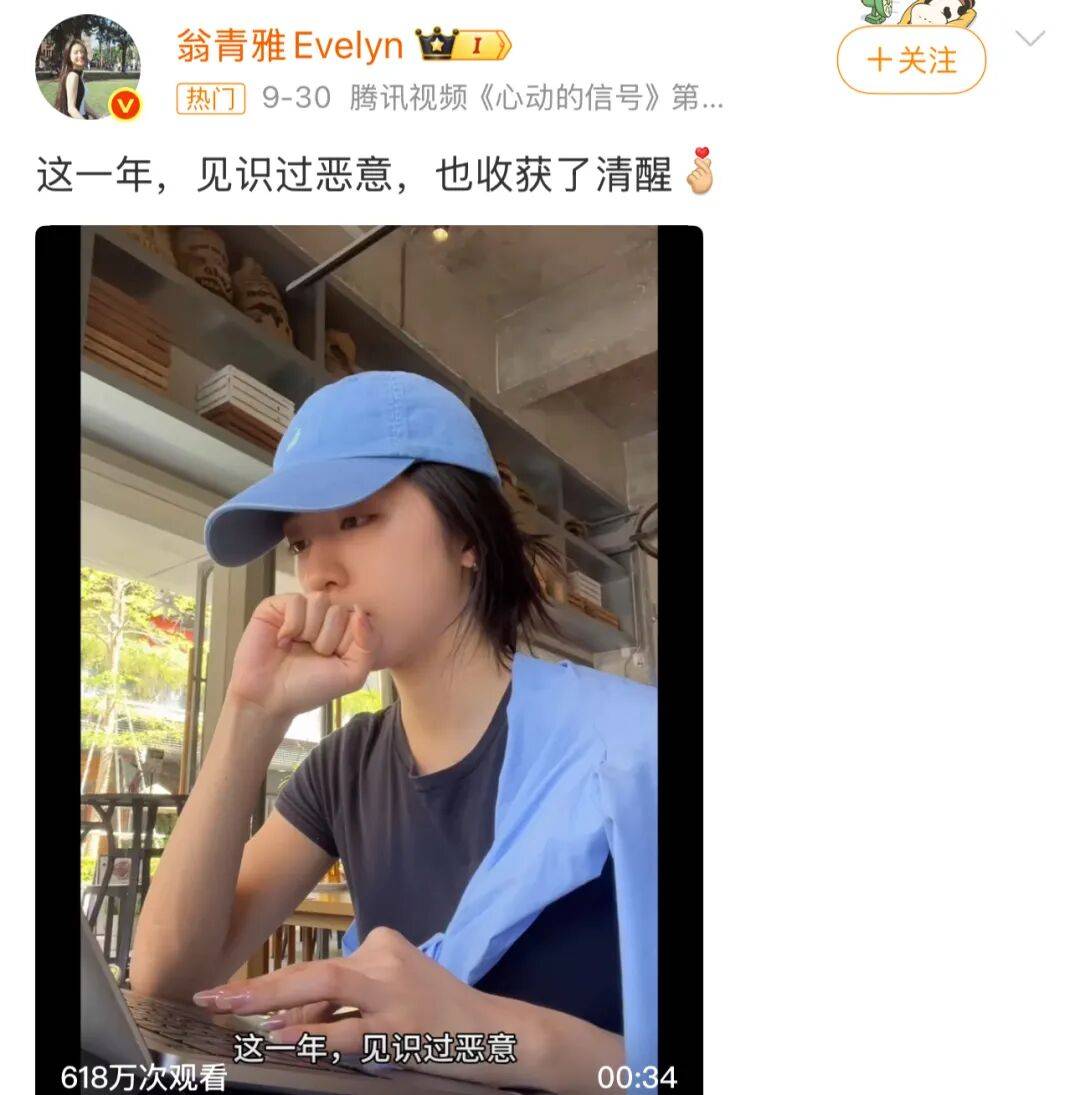 总之,一个月前,翁青雅发布了一条36秒的视频,配文“这一年,见识过恶意,也收获了清醒”,为过去一年的风波做出了回应。