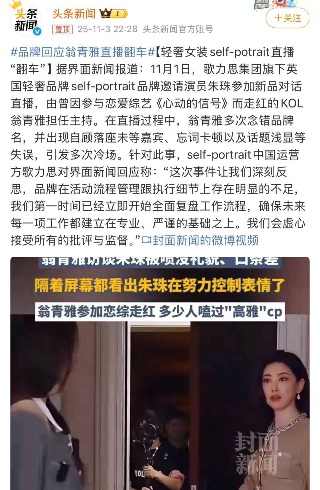 怎么不算在推动人类大同呢,砸了钱的品牌方、传媒专业的同行、真情实感心疼朱珠的网友,乃至翁青雅自己的粉丝,恐怕没有一个人,能对这段采访说出一句好话吧?