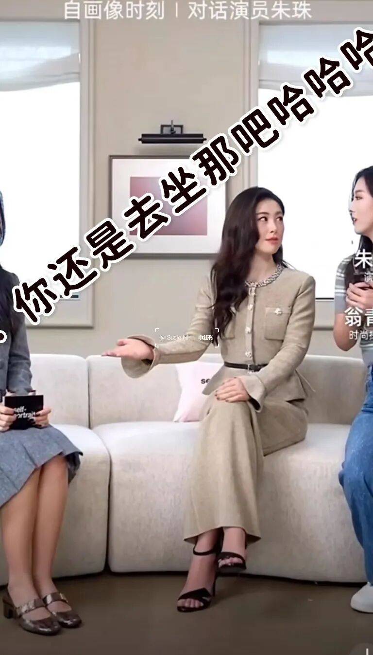 还有后续品牌方工作人员到场协助控场,她直接cue对方入座,待工作人员因位置过偏被朱珠提醒调整后,自己顺势坐进c位?