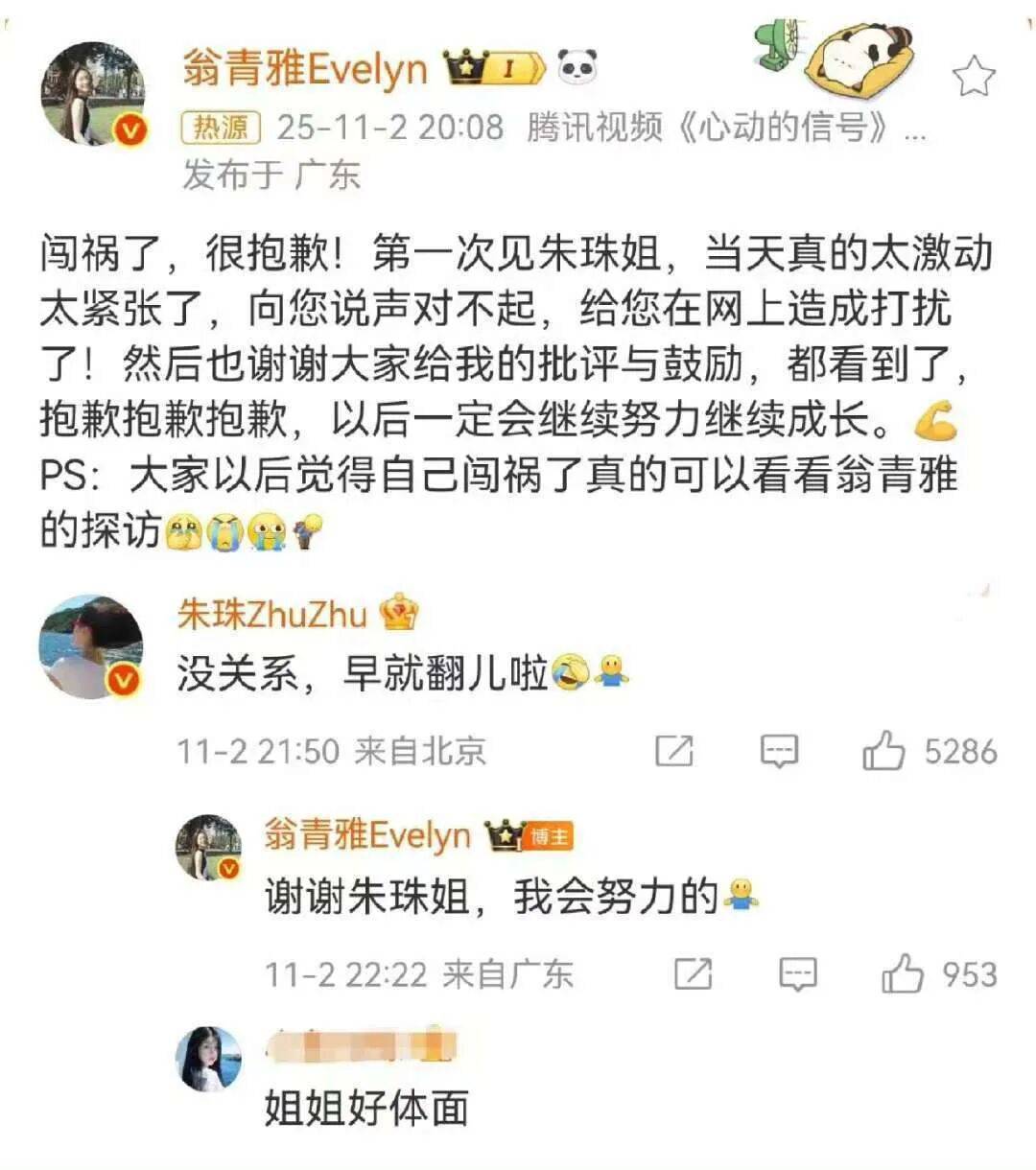 面对史诗级尴尬的场面,不仅全程保持风度,事后还体面地回应了翁青雅将失误全部归咎于情绪的道歉博,表示“没关系,早就翻儿啦”。