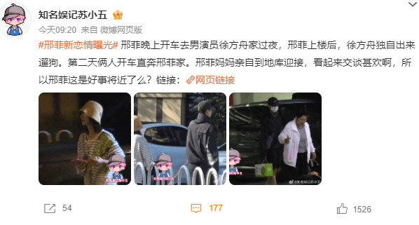 狗仔发视频爆料说邢菲和一个叫做徐方舟的男演员正在谈恋爱呢: