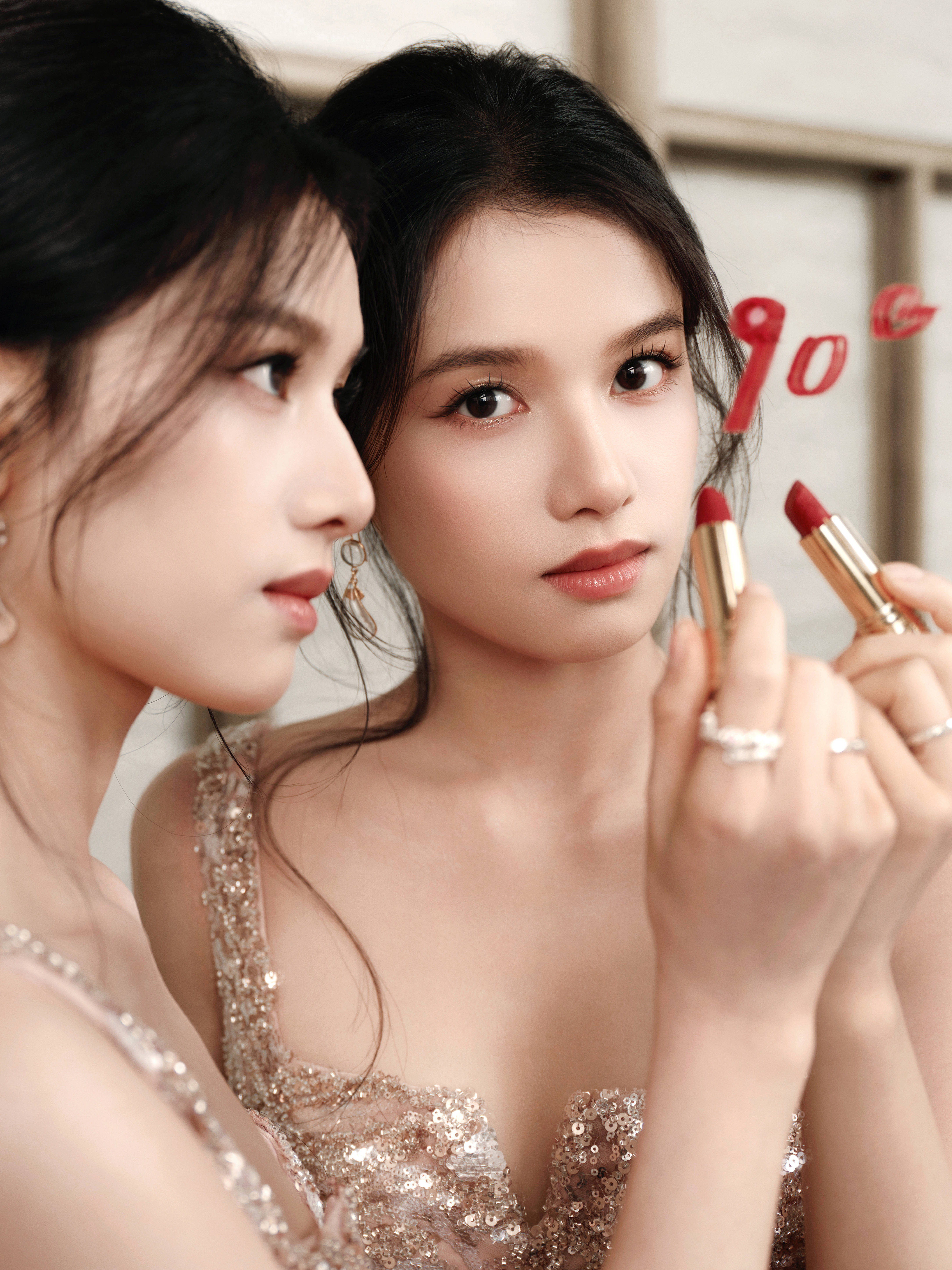 张婧仪盘发造型优雅高贵。